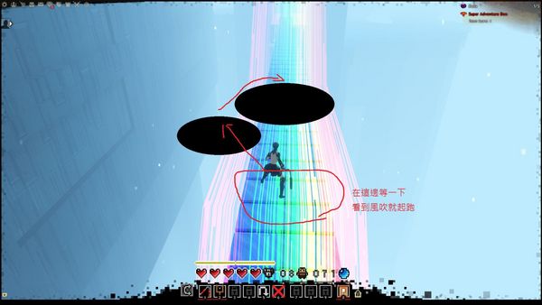 正中间会被挡住 跳不上去的 所以只能左跳一次后回到桥上稍等第二阵风吹过