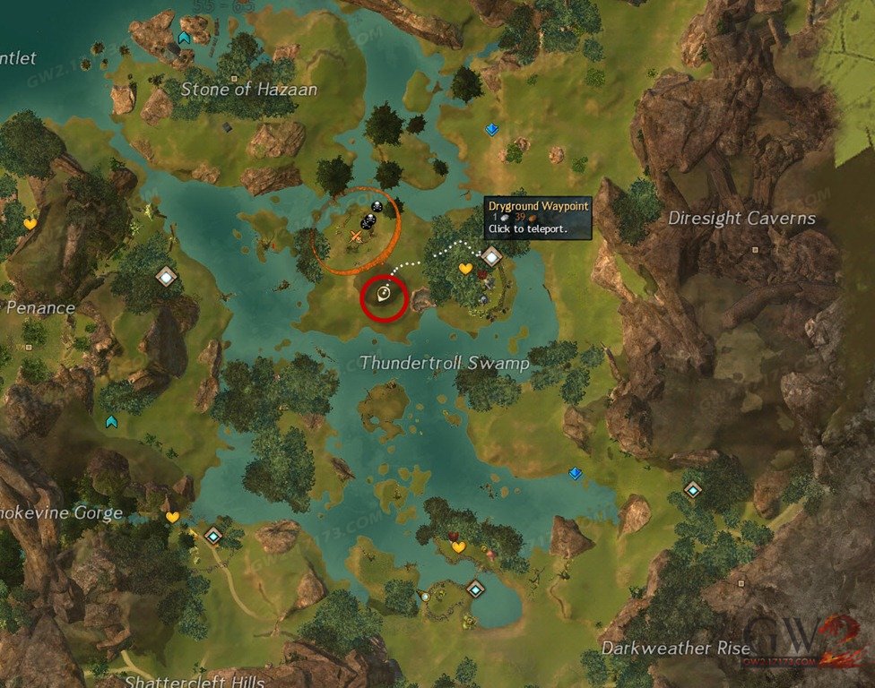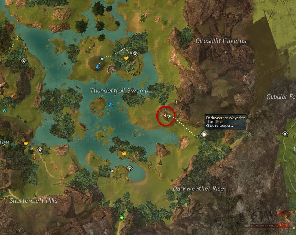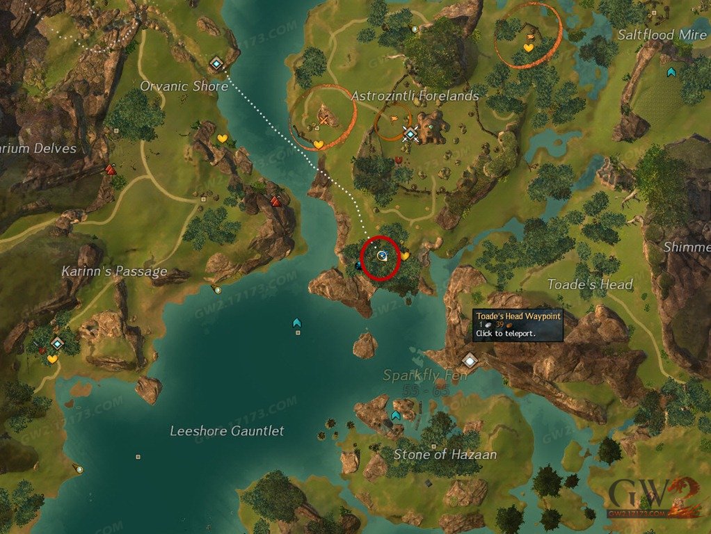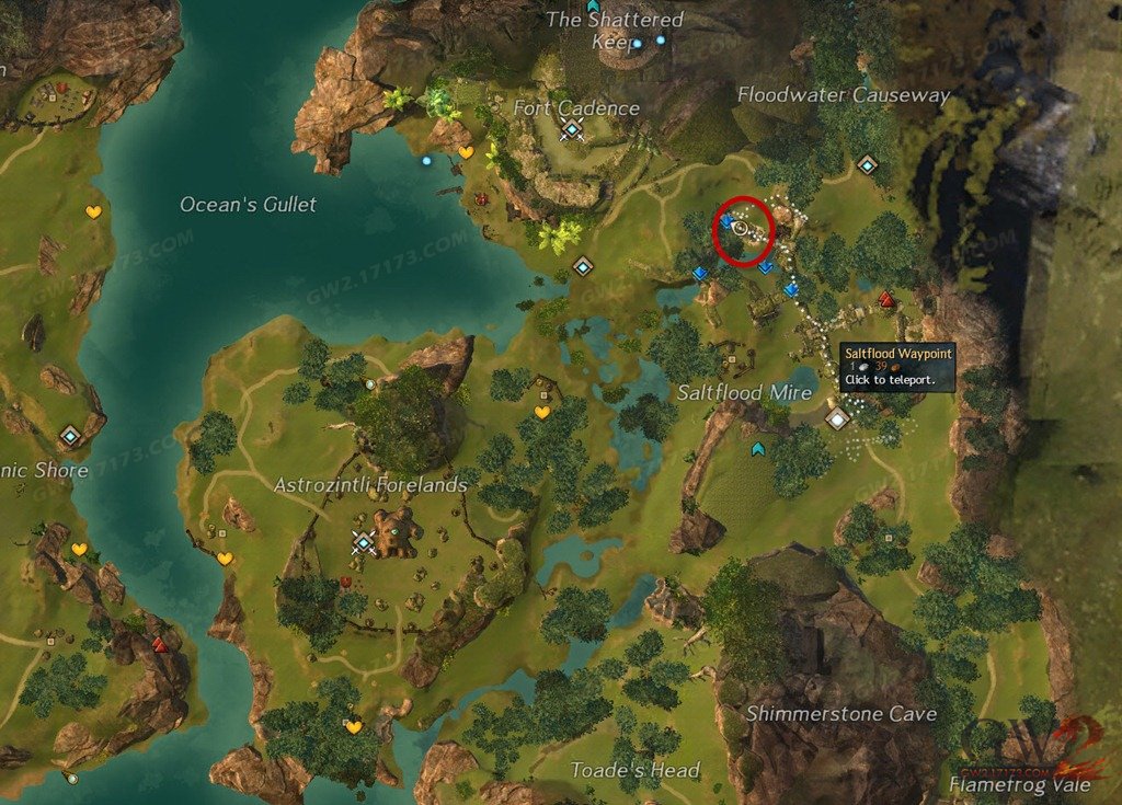 《激战2》本次“吞噬托”崛起版本更新中添加了9个BOSS周系列成就,其中三个是要求你去三张有巨龙刷新的地图寻找巨龙的牙齿,本篇介绍闪萤沼泽(Sparkfly Fens )寻找巨龙牙齿的具体攻略,在本地图中你总共需要去10个区域寻找10个巨龙牙齿才能完成成就。