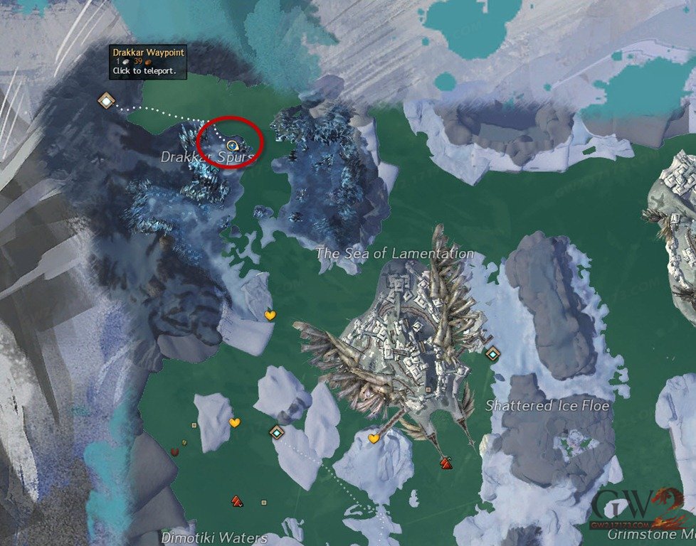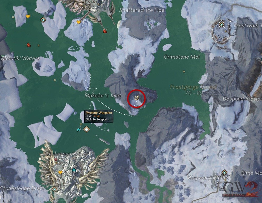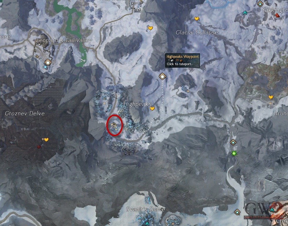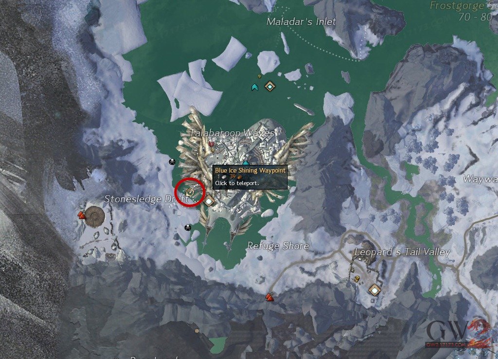 4. Blue Ice Shining Waypoint – 地图西面,路标点的上面