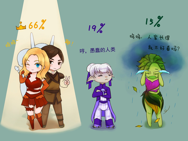 在国服开放的三大种族中,人类最受欢迎,占到66%;智慧的精灵阿苏拉为19%;神秘的“树人”希尔瓦里为15%。不是树人不好看,实在是人类妹子太吸引人啊!