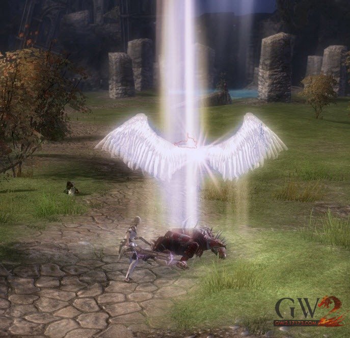 《激战2》的黑狮贸易公司除了新的武器皮肤外,还为我们带来了一款新的永恒圣印插旗终结技能,这款插旗终结技的售价同样是600宝石,插旗的动画将展示为一个神圣的天使印记造型。