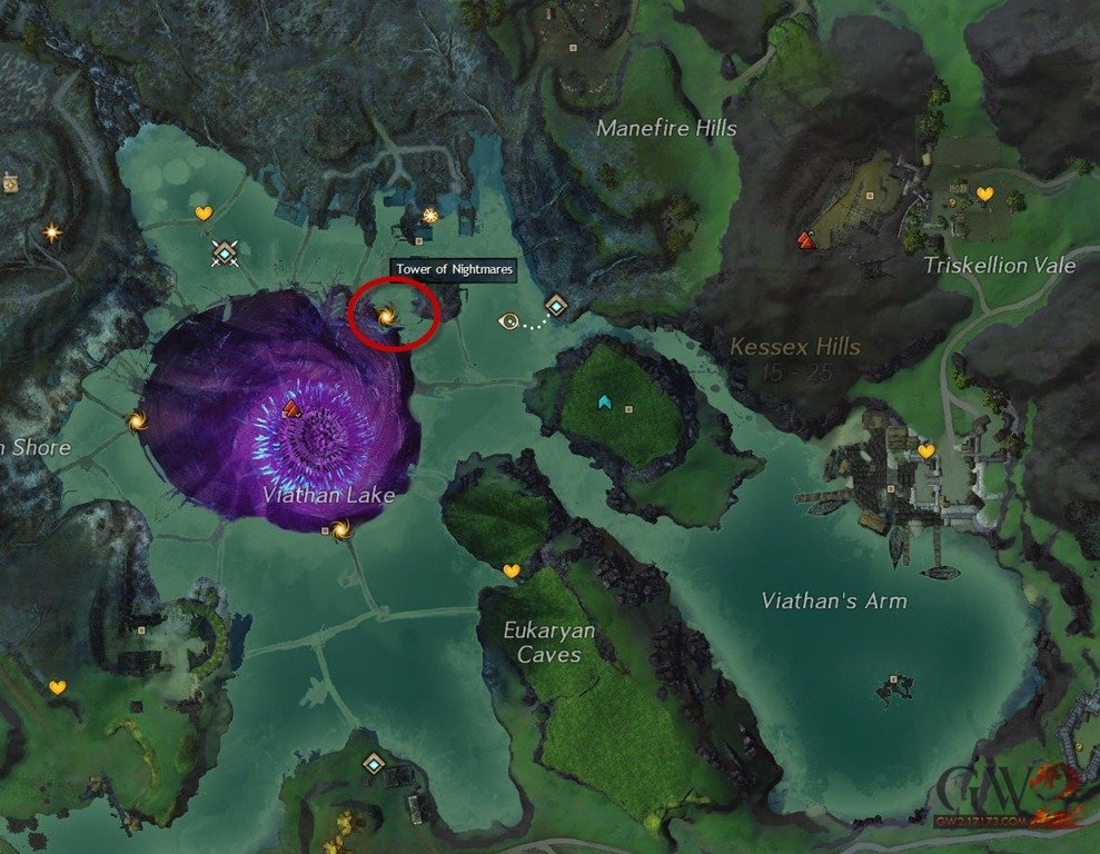在凯席斯山脉中你可以看到噩梦之塔外出现了三个入口点,访问入口就能进入噩梦之塔内部,同时本次的所有成就都在塔内完成。