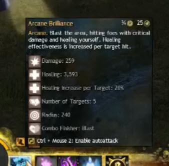 奥术光辉:3600的基础治疗量。此外你可以最多打击5个目标,然后击中的每个目标将增加20%治疗量,五个目标全部击中则治疗量将增加到7200。这个技能将必定暴击,这个技能有施法时间,是一个PABOE技能。