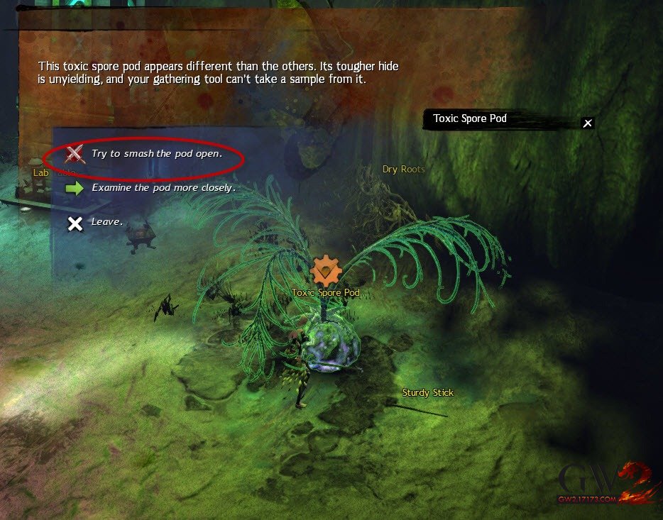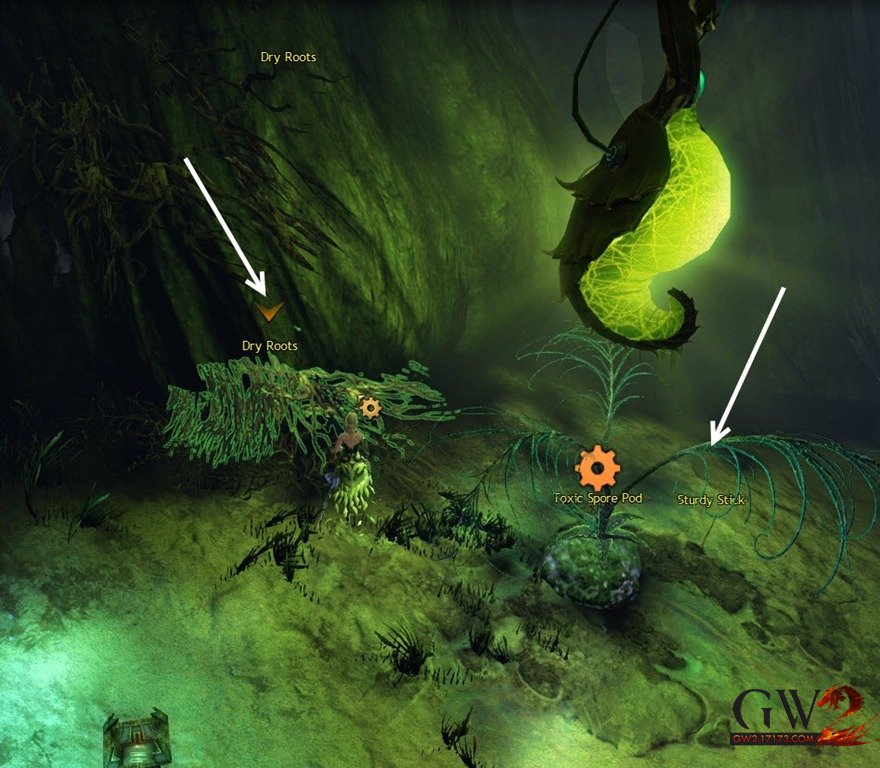 ·之后和Toxic Spore Pod 互动,将火炬丢到孢子上。获得干枯的剧毒孢子。