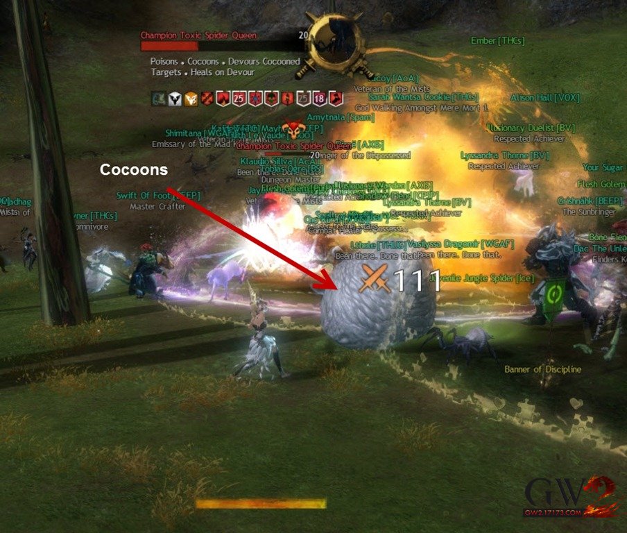 减少你在打蜘蛛女王时的DPS速度,因为你很快的杀了她,那么就比较少的机会会刷新出蜘蛛茧。战斗时间越长对完成成就越有利。