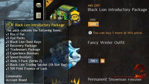 黑狮新手包 - 售价1600宝石(比起分开购买节约44%)