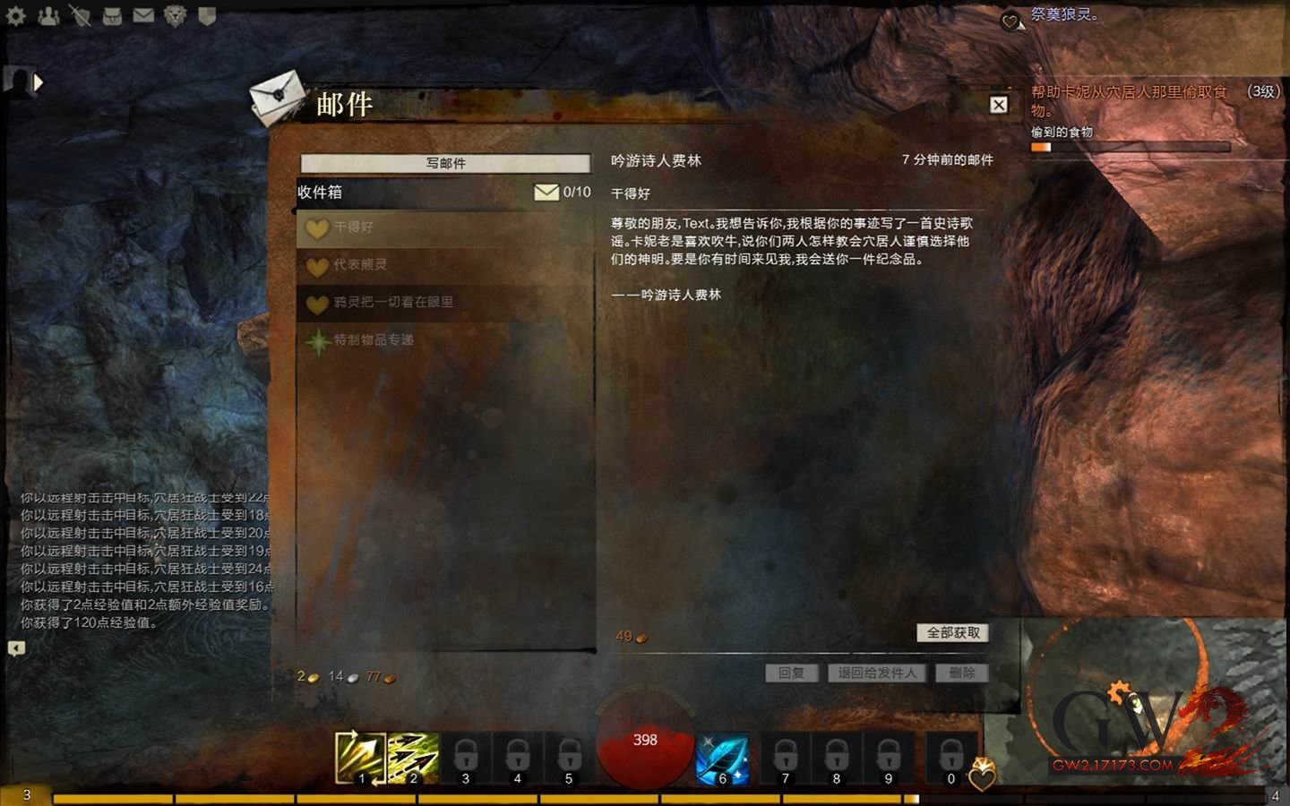 查看爱心任务邮件奖励,开启下一个任务‘祭祀狼灵’。