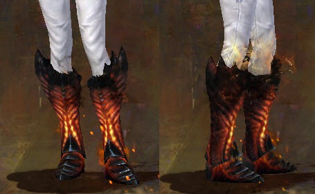 《激战2》迷雾边界上线后,新增了成就点数的奖励鞋子皮肤,之前成就点数奖励的装甲皮肤已经有了头盔、肩膀和手套。同样的本次的皮肤套装分为2种,地狱火系列和光耀系列。你可以在21K的成就点数时获取它们作为奖励。
