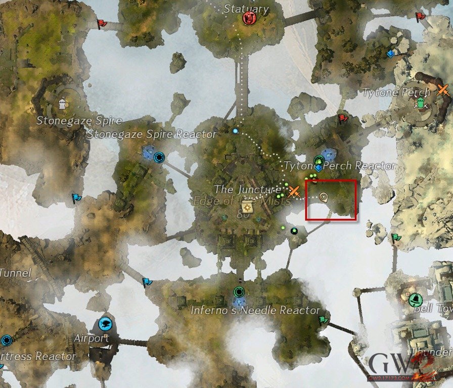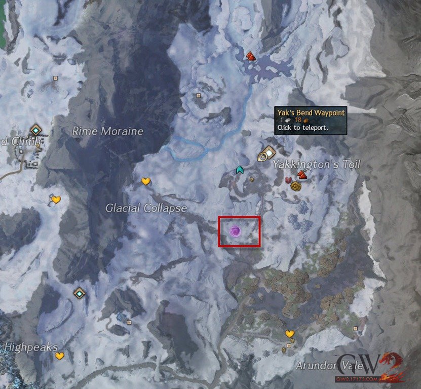 如果传送门事件触发后,地图上将会出现类似WVW传送门的小图标。以下提供几个快速的航点定位代码,你可以把它们复制粘贴到游戏的聊天窗口中来快速定位航点。这样有助于你能够更快的寻找到传送门事件。