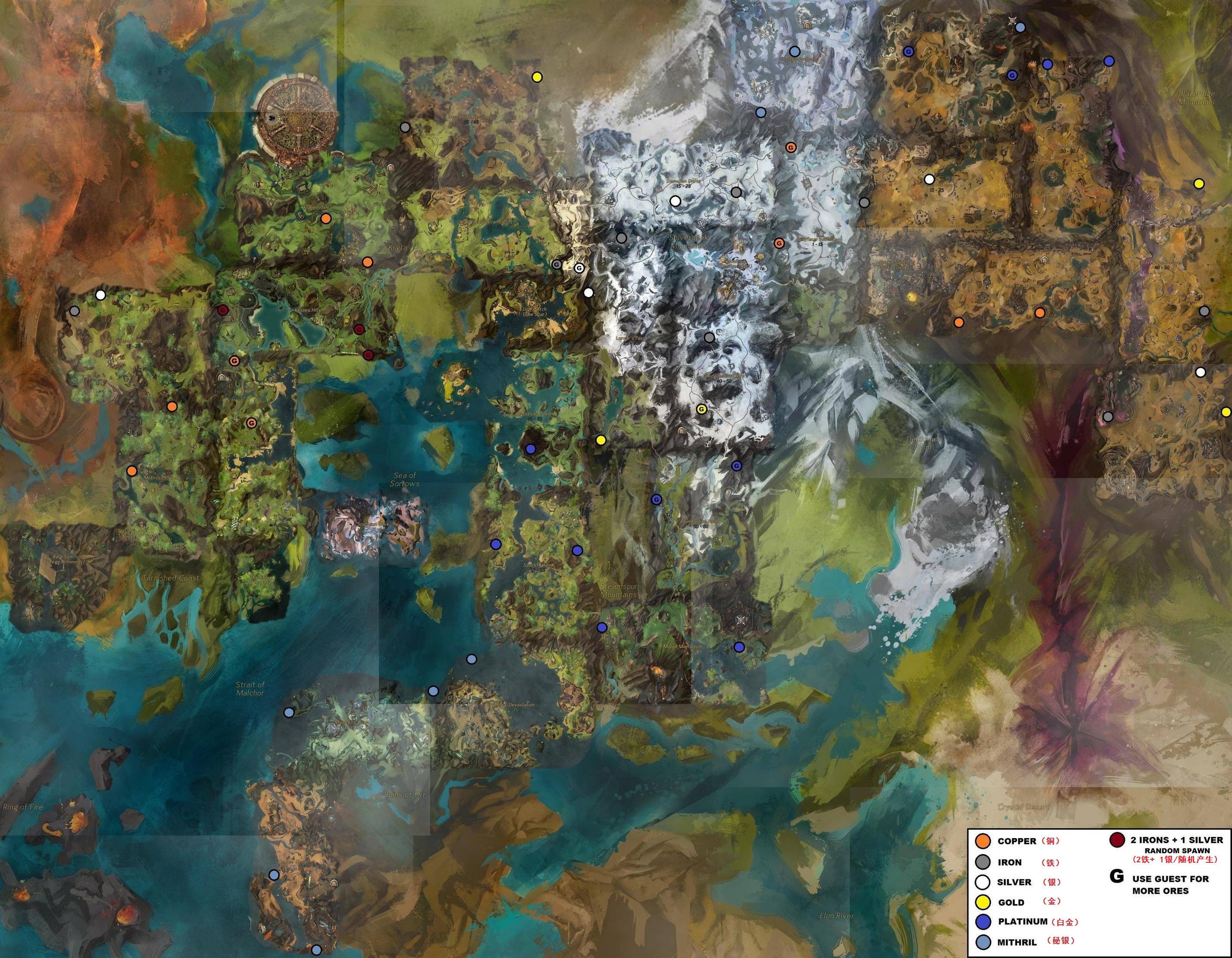 - 第1页:《激战2》中的固定富有矿源采集点分布