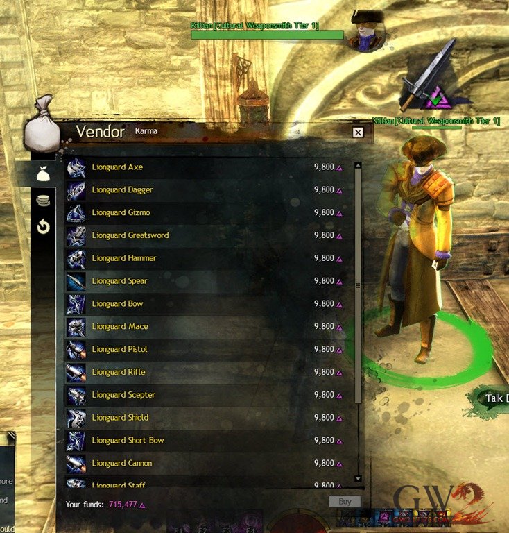 狮子拱门还能兑换到狮门守卫和海盗武器皮肤,售价为一把武器9800卡玛币。