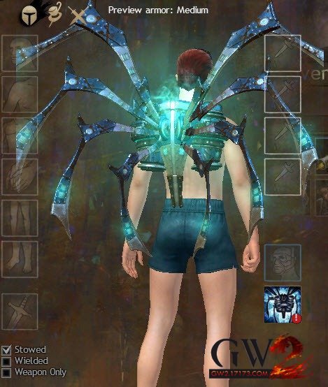 具体的解释请看这里: 《激战2》狮门逃亡 新增尖刺刀锋背饰展示