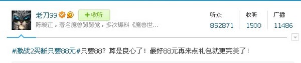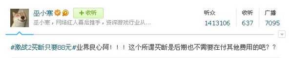 也有玩家算了一笔账,《激战2》在美服的售价为49.9美元,折合人民币约300元,欧服售价为69.9欧元,折合人民币更是高达600元,而在国服的买断价格仅为88元,这一价格在中国人民生活水平面前是一个能够接受的价格,非常符合中国的国情,并且符合玩家的调研结果,称这算是一个掏心掏肺的良心价了。