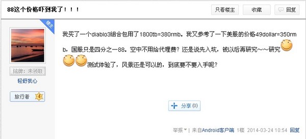 同时,尝尽游戏各种辛酸的玩家们认为,中国的网络游戏处处都是“坑”,同那些动辄成千上万的游戏装备相比较,《激战2》仅仅88元的买断价格显然低得令人难以置信,未来肯定会出现各种付费“坑”,不然这也太不符合于游戏的“行情”了吧。