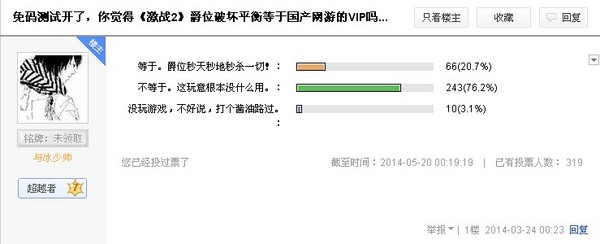 在《激战2》无码测试结束之后,官方论坛和贴吧玩家对于“爵位是否等于VIP”也进行了多番讨论。在贴吧,76.2%的玩家认为爵位没有什么影响,20.7%的玩家认为爵位等同于传统网游的VIP。