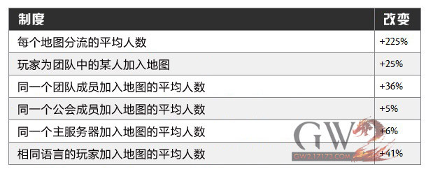 该系统是一个玩家负载平衡器,它将记录你的行为,例如你喜欢的团队、公会、语言、已经主服务器等,可以寻找到你经常在一起玩的人所选择的地图分流数据。根据这些数据,你每次进入地图时将会被分流到更加适合你的地图分流中。在这里你可能遇到经常组队的玩家或者公会成员。
