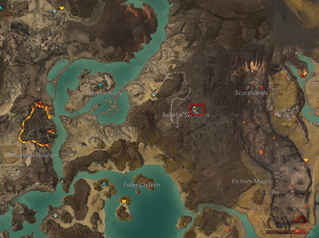 ·Rebel’s Seclusion位于Fireheart Rise的东部。你可以传送到Breaktooth’s Waypoint,之后向东北方向走进入一个入口,入口处拥有一些怪物守卫。