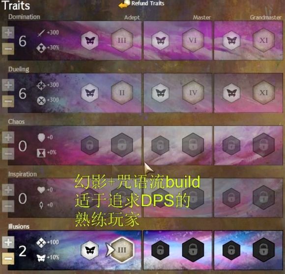 幻术增加伤害的特性比较分散,而宗师级的特性又不够强力,这就导致幻术的特性经常