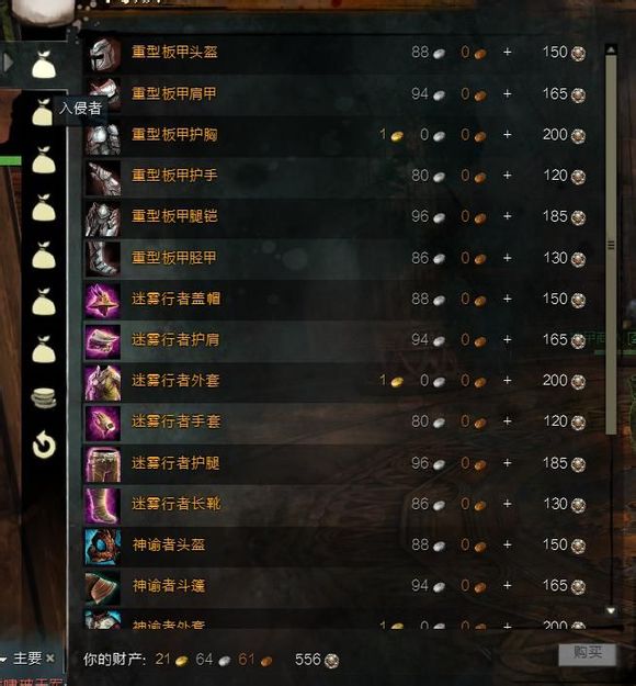 既然是WVW那么“战场装备”便是不二之选了,而战场装备中的入侵者系列的属性是最符合该套构成理念的。