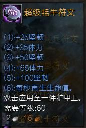无论是坚韧和体力对于抗性的提升还是6件的战吼移除症状,都是在战场中极其优秀的需求,配合构成的纯净之音几乎可以瞬间几个人配合下身上毫无症状。