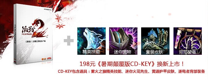 为了迎接暑期的到来,激战2近期推出暑期颠覆版CD-KEY。本次暑期颠覆版CD-KEY的售价仍然为198元,同样再赠送火雾狼精英技能,但是赠送新的迷你宠物、新套装皮肤和新的背部装备。