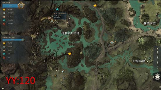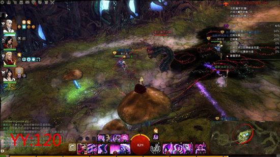 第一个BOSS的地方,闲打掉几个小型的噩梦树藤,然后等大型噩梦树藤出来除掉就行了,记得躲避地上的小圈就行了,远程职业可以旨在上图我的位置,在前期可以无脑输出打怪物,前期的毒圈和怪物攻击都是不会攻击到这个上面的。