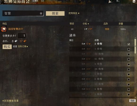 第一,怎么打出伤害。40个人和60个人的团对冲,如果只是正常输出伤害肯定比不过对面,因此,我们就要运用到“暴击”这一被大多数人所忽视的属性。暴击类属性分为暴击几率和暴击效果,前者决定打出暴击的概率,后者决定暴击造成的伤害。正常情况下,如果专注这两个属性,那么威力及其他属性就会比别人低很多,得不偿失。因此,我们要用到一个没有人在意过但是在合理运用下吊炸天的符文“超级智慧符文”。(为了避免有喷子说我炒货,上一下现在的该符文价格,大家看好了,这个价格是个人都买得起吧?)超级智慧符文的效果是切换武器后第一次攻击必定暴击,其实这是一个翻译错误,实际效果是切换武器后前三次攻击都是100%暴击。为什么我说这个符文“在合理运用下吊炸天”,首先,一般情况下带这个符文三次暴击只是多一点伤害,这对于动辄上百人的大团战毫无意义,但是,当3、40人一起使用该符文时,效果惊人的好。试想一下,两边对冲,人多的一边本来稳赢,但是接触的一瞬间第一排火车头身上跳起了无数暴击数字,然后集体跪躺,剩下的中轻甲怎么玩?因此这个符印在大型团战中效果拔群。