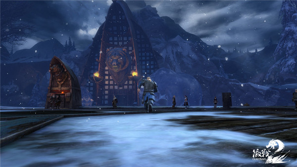 玩诺恩的人肯定对雪地情况特别清楚:一般雪地中的环境特效大致有以下几种,最基本的有下雪特效,另外加上光源处理、有时还会有风声等等烘托气氛,但这些特效都是直接反应在屏幕上,玩家并没有去与之互动。而在《激战2》中则增加了反应在“屏幕上”的雪地场景特效,例如当玩家击败雪地中的BOSS时,或者触发BOSS登场时的小段过场时候,屏幕上会出现霜痕表现的既视感,感觉就是被BOSS眩晕了一样。