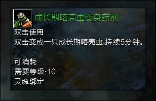 10、成长期喀壳虫变身药剂:双击变成一只成长期喀壳虫,持续五分钟