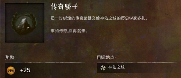 本次激战2更新之后在探险家一栏增加了一个成就:传奇骄子成就,这个成就完成之后有25点成就点,并且还奖励“传奇骄子”的称号。完成的条件就是做两把一样的传奇武器并且进行灵魂绑定,就算是做两个水下武器,成本也在1500金以上了,堪称最贵成就了。A社这是要逼死成就党啊。