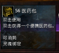 拿出一个医药包,替换武器技能,获得医药包后利用技能可以获得加血药剂、清除症状药剂、激怒和迅捷几种药剂,是清状态职业和腿短职业一个比较好用的道具,用完了貌似还可以丢到地上,被人捡起来还能继续使用的。在WVW世界战场上面也是可以用的。