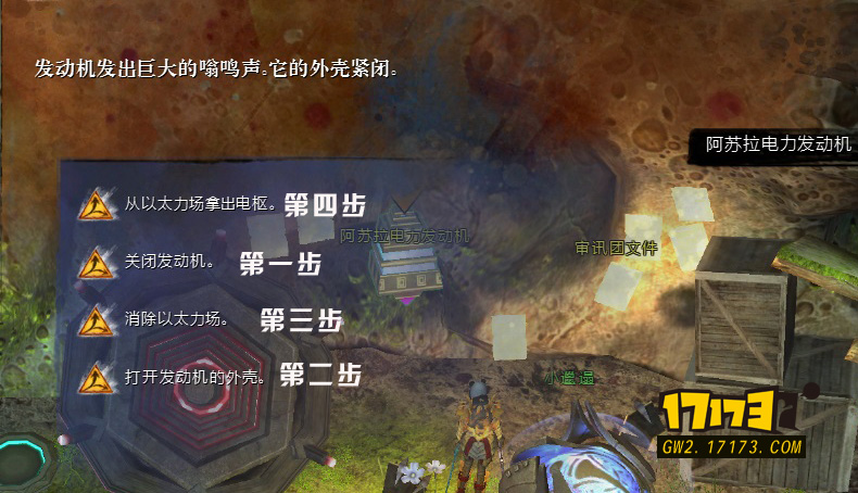 ·5号选择阿苏拉电力发动机对话,关闭发动机 –> 打开发动机外壳–> 从以太立场中拿出电枢,清除怪物后选择(选择关闭发动机——》打开发动机外壳——》消除以太立场。)