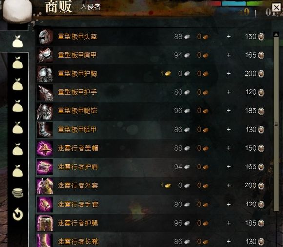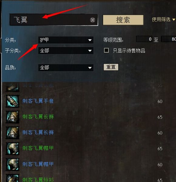 (防具)冒险者、龙族、先知、夜贼、纹饰、尊贵、无赖系列以及其他80级特异防具(有些防具皮肤,比如先知和无赖,其物品名称不一定有先知/无赖关键词,请自行在交易行比对查找)。