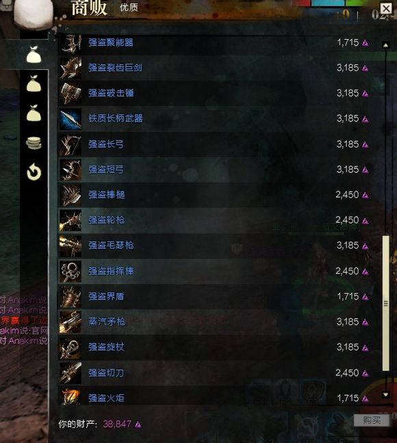 (以上五大种族的T1T2武器都建议通过交易行、战场等其他渠道获得,T3只能用业力买,看个人喜好购买吧)。