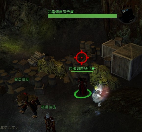 密语教团基地在血潮海岸死路传送点洞里的副本里(要进入2次副本,装备和武器商人头上没标志,和NPC对话可以购买)如图所示: