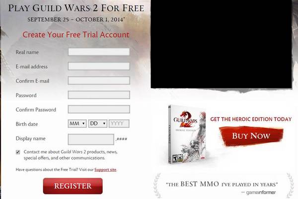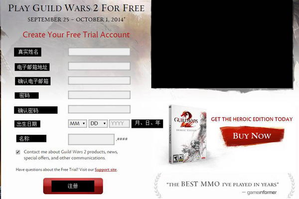 免费试玩周申请网址:http://link.17173.com?target=https%3A%2F%2Fregister.guildwars2.com%2Ftrial