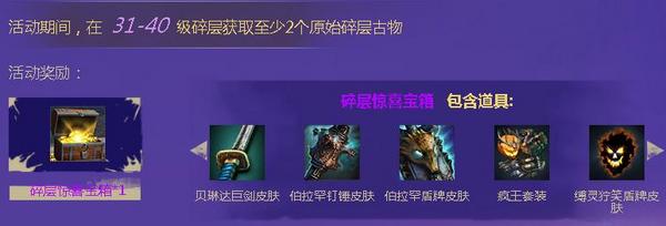活动期间,在21-30级碎层获取至少2个原始碎层古物