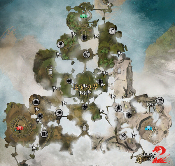 迷雾边界不同于《激战2》World VS World(世界之战,简称WVW)其他地图,这里的战斗并不计入最后的WVW积分,地形也更加多变,霜原、劣土、巨林三种迥然不同的地貌及气候同时出现在一幅地图上,三个服务器的玩家,将在这里展开永恒的攻防争夺。