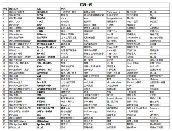 以下为激战不断电在线PVP邀请赛大区参赛队伍名单
