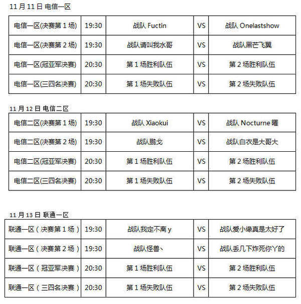 激战不断电线上PVP邀请赛小组赛全部比赛已于11月6日结束,每个大区晋级四强的战队将于11月11日-11月13日争夺大区冠、亚、季军。