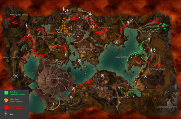 逃生狮子拱门更新(Escape from Lion*s Arch)推出,当时全地图玩家要帮助地图上Npc逃出城市。