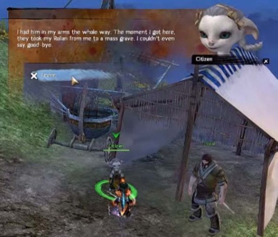 同一时间,有玩家发现一只银头发的阿苏拉母亲,她没有名字,就在伤者营的旁边,哭诉著她失踪的孩子: