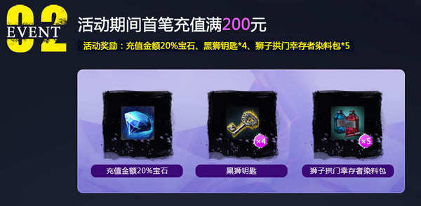 活动期间,首笔充值达到一定金额即可获得充值金额20%的宝石返利及游戏道具馈赠。