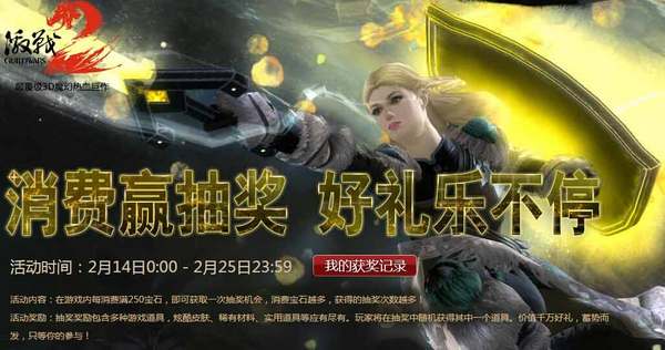 活动内容:在游戏内每消费满250宝石,即可获取一次抽奖机会,消费宝石越多,获得的抽奖次数越多!