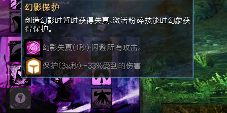 还有很多人不知道幻影保护特性到底是怎么回事 这特性是 你召唤幻影会获得1秒的失真 就是召唤出来的那一瞬间. 至于粉碎获得保护 实际情况是粉碎也无法给幻影获得保护.